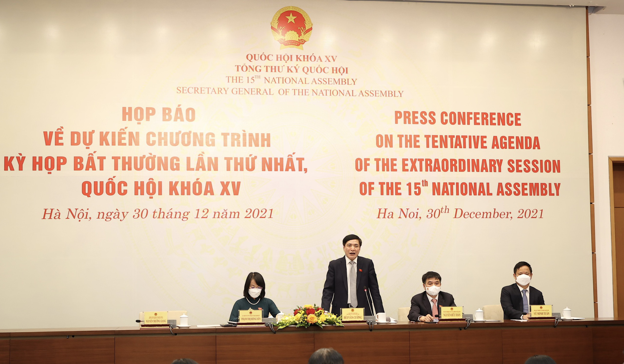 Tổng thư ký Quốc hội, Chủ nhiệm Văn phòng Quốc hội Bùi Văn Cường phát biểu tại buổi họp báo
