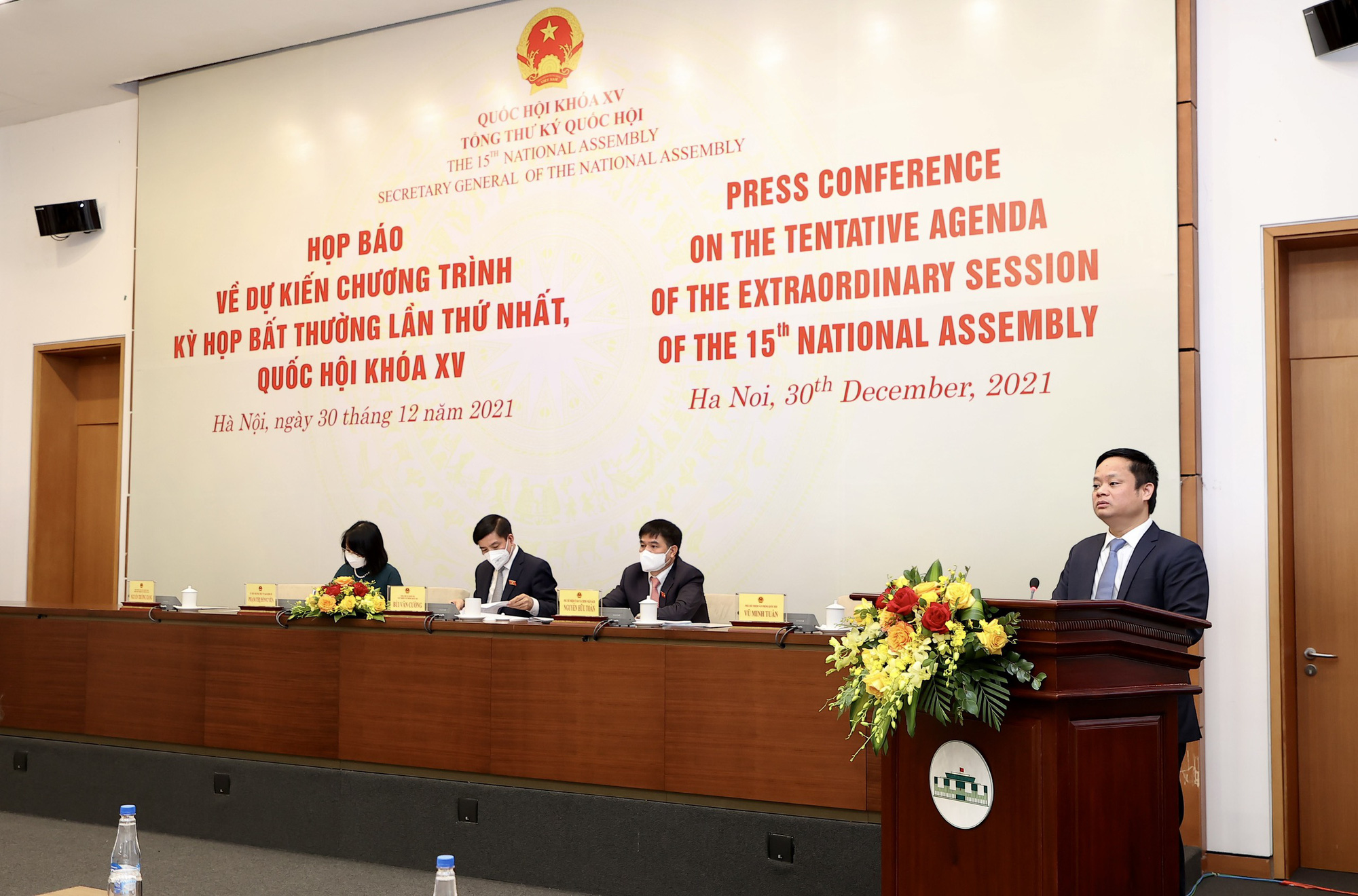 Ông Vũ Minh Tuấn, Phó Chủ nhiệm văn phòng Quốc hội thông tin tại buổi họp báo.